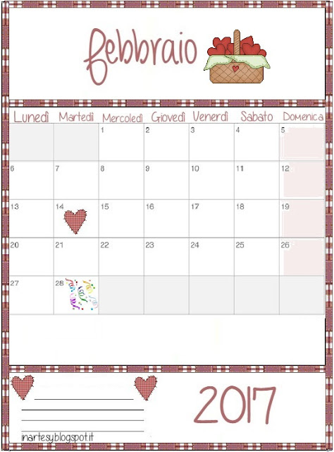 Come avevo promesso, per le mie care lettrici, una nuova pagina del calendario 2017 da stampare gratuitamente.